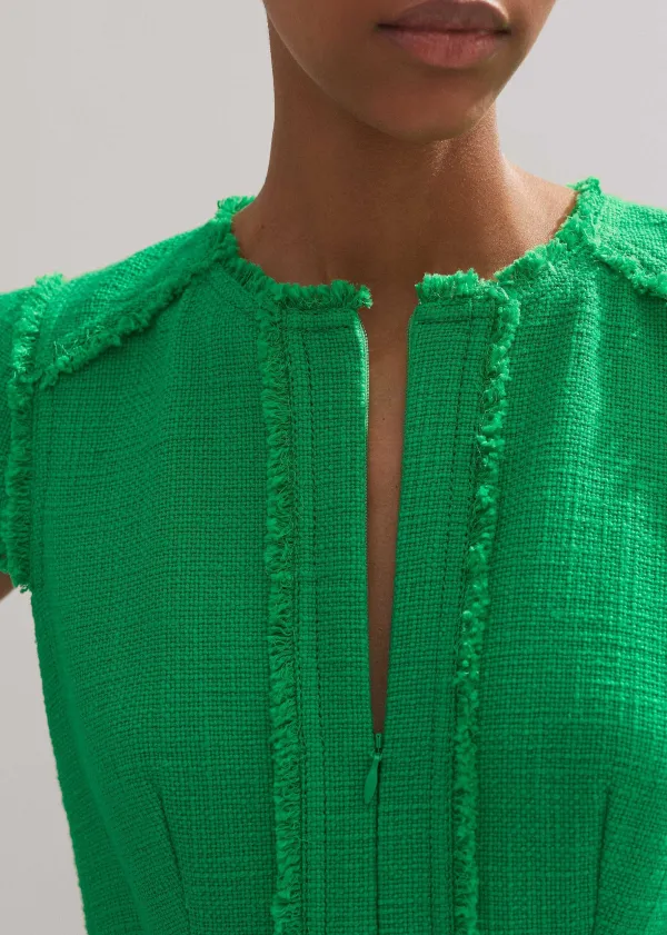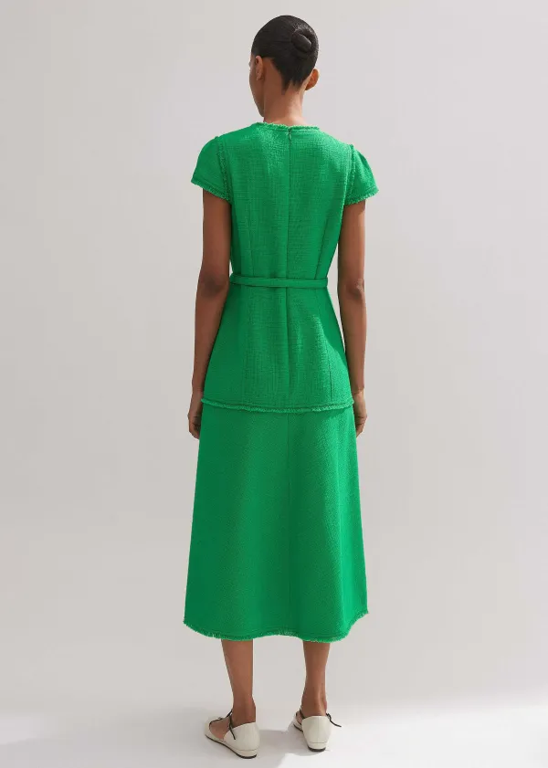 In A Bold Spring Green Hue, This Midi Dress Is Cut To A Flattering, Structured Silhouette With Cap Sleeves And Distresse…