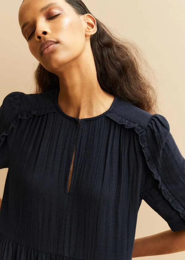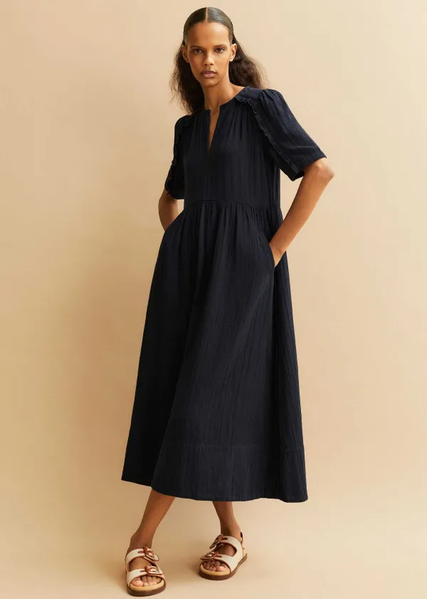 This Dress Shows How A Darker Colour Palette Works In Your Holiday Wardrobe. Cut From Naturally Textured, Breathable Cheesecloth In Navy, The Simple Short-Sleeved Style Is Crease-Free And Easy To Pack, Making It Perfect To Pull On At Your Destination And Wear All Day In The Heat.