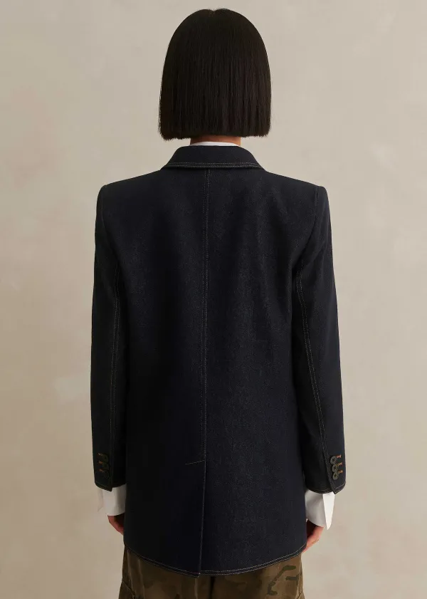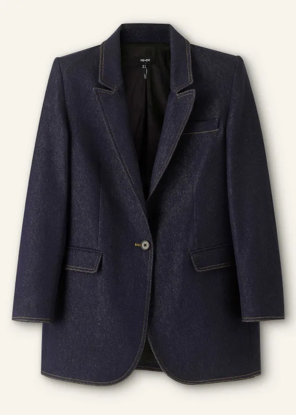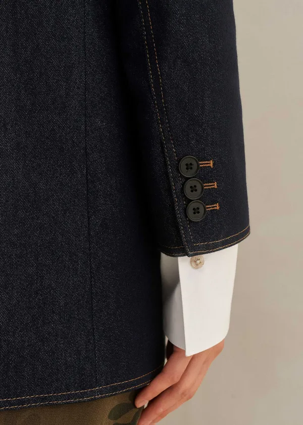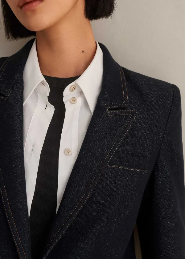 ME+EM Cotton Blend Denim Sharp Shoulder Blazer | Women Blazers