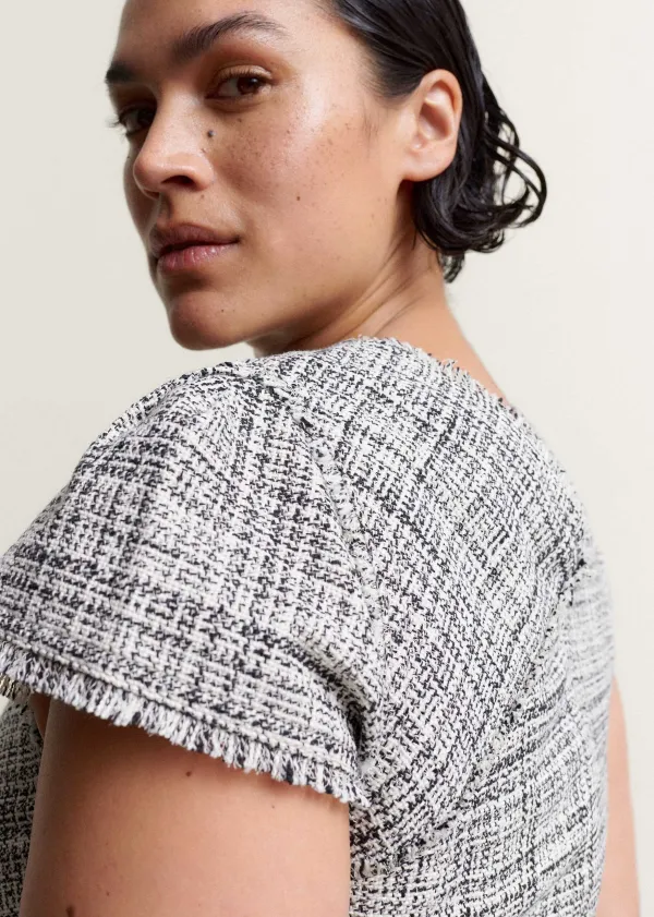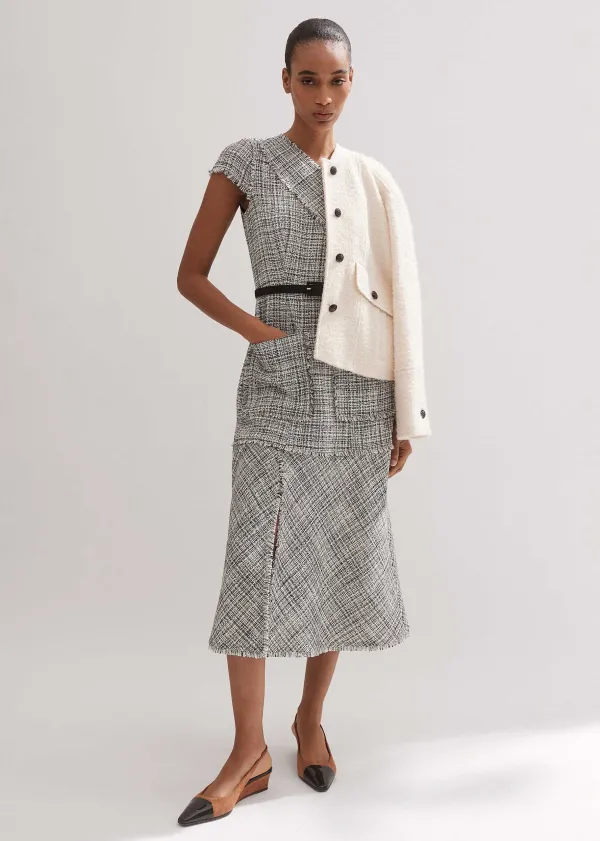 With A Crossover V-Neckline, Fringe Detailing And A Monochromatic Weave, This Dress Puts A Contemporary Spin On Classic Office Codes.