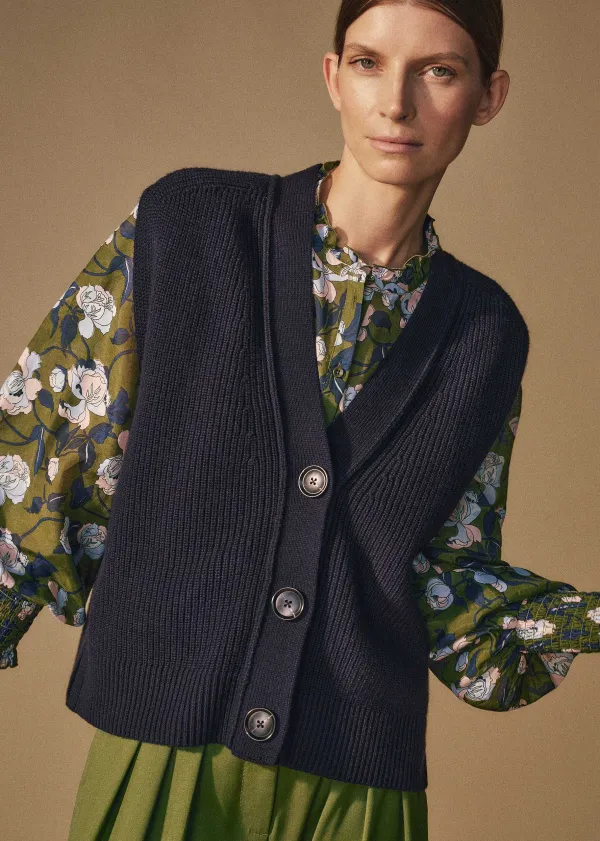 ME+EM Cotton Merino Rib Relaxed Buttoned Vest | Women Vests