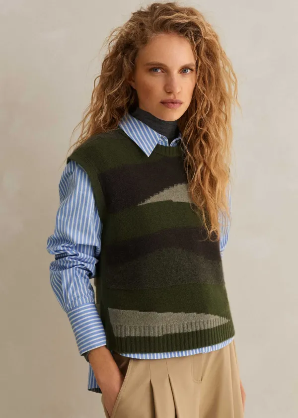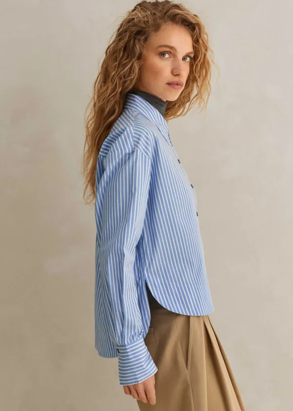 ME+EM Cotton Stripe Dipped Hem Crop Shirt | Women Shirts