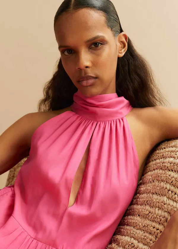 ME+EM Cotton Voile Halterneck Full-Length Dress | Women Maxi Dresses
