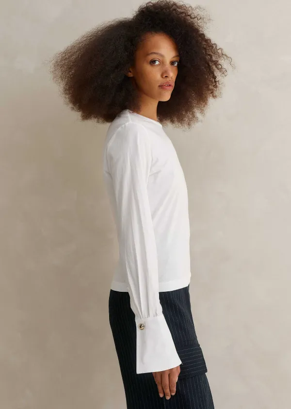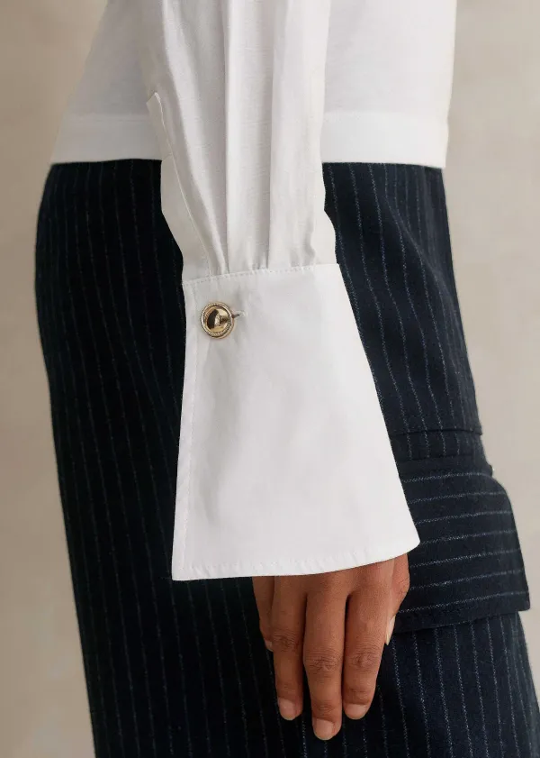 ME+EM Feature Button Crew Neck Layering Shirt | Women Shirts