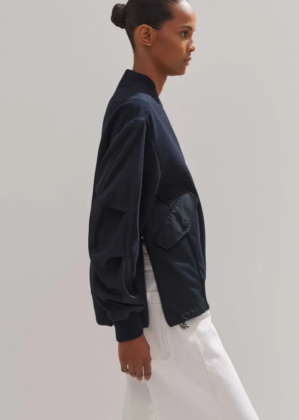 ME+EM Flannel Mix Deconstructed Bomber Jacket | Women Crop Jackets