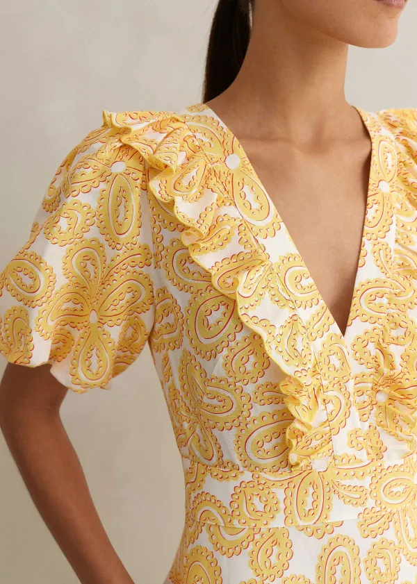 ME+EM Linen-Blend Lace Print Midi Dress | Women Midi Dresses