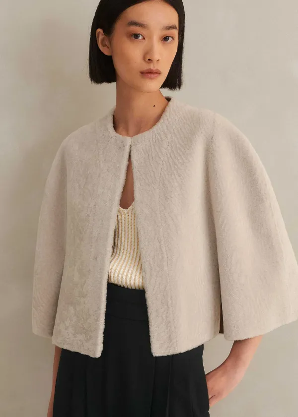 A Contemporary Cropped Cut And Luxuriously Tactile Finish Define This Cape. Crafted From Shearling With A Super Soft, Fl…