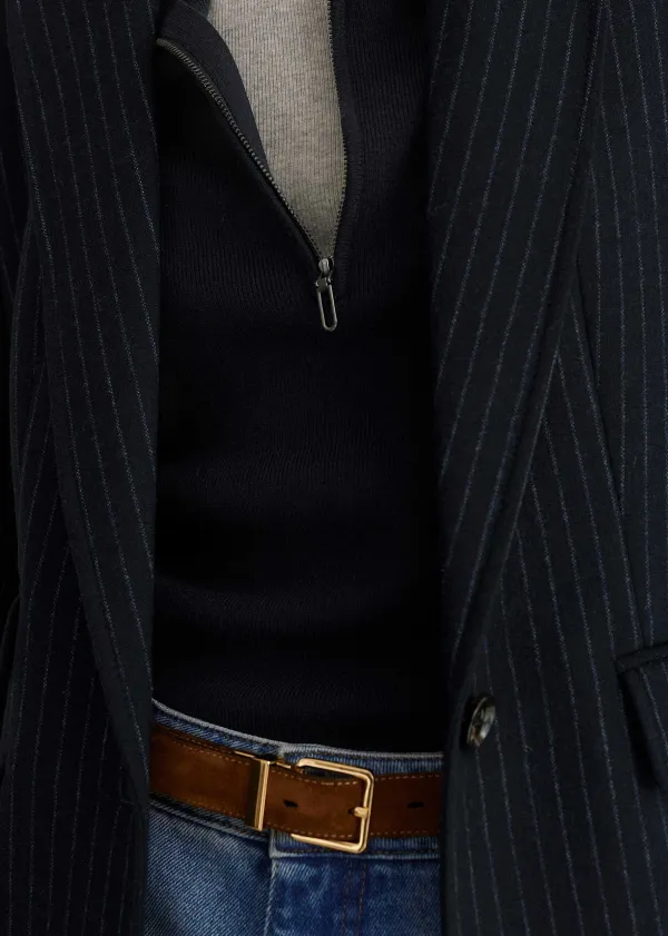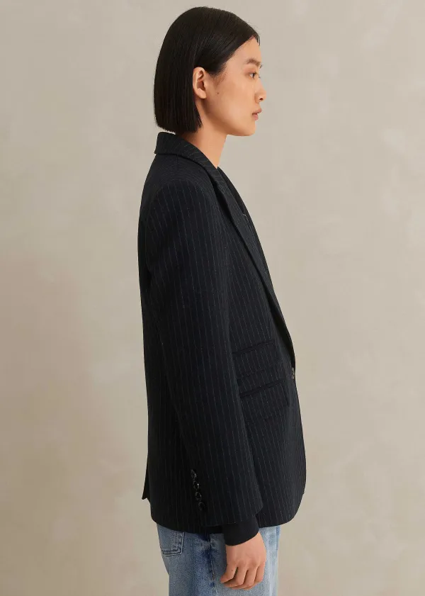 An Oversized Relaxed Silhouette Grants This Boyfriend Blazer Everyday-To-Evening Versatility. The Classic Pinstripe Pattern Boasts A Blend Of Navy And Charcoal Hues So It Can Be Styled Over Neutral Layers.
