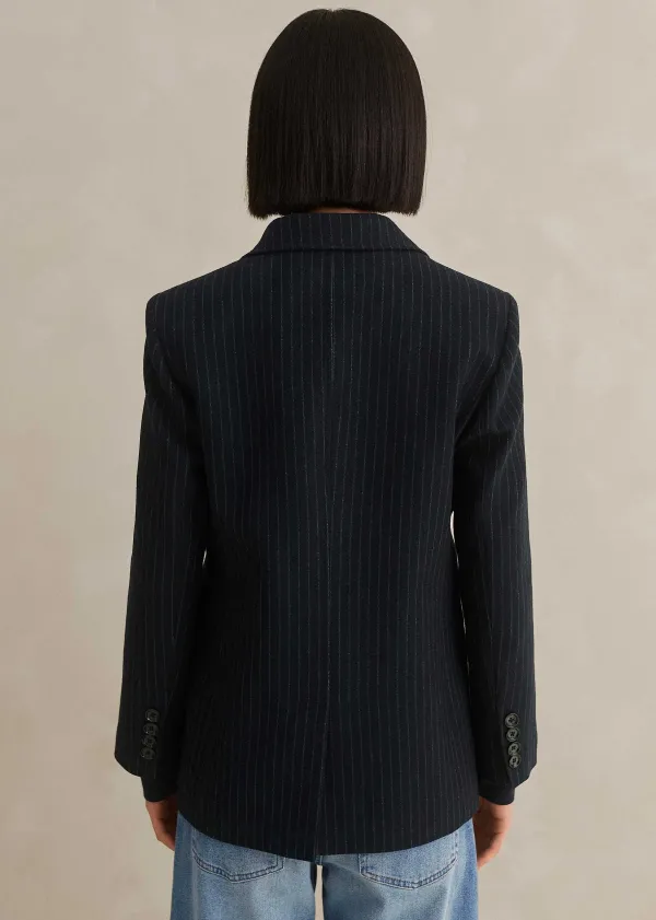 ME+EM Pinstripe Bracelet Sleeve Boyfriend Blazer | Women Blazers