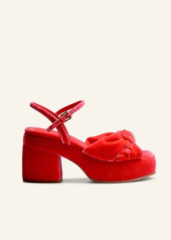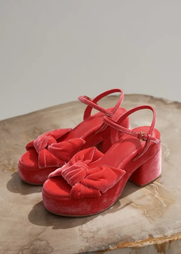 A Duvet-Like Softness And Bold Coral Hue Come Together Across This Platform To Create The Ultimate Day-To-Night Heel. Crafted From Italian Crushed Velvet, This Pair Is Elevated With A Soft Knot Atop Your Toe And Is Intelligently Designed With Comfortable Cushioning At The Sole And A Low-Pitch Heel For Am-Pm Versatility And Optimal Comfort.