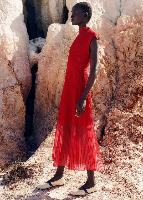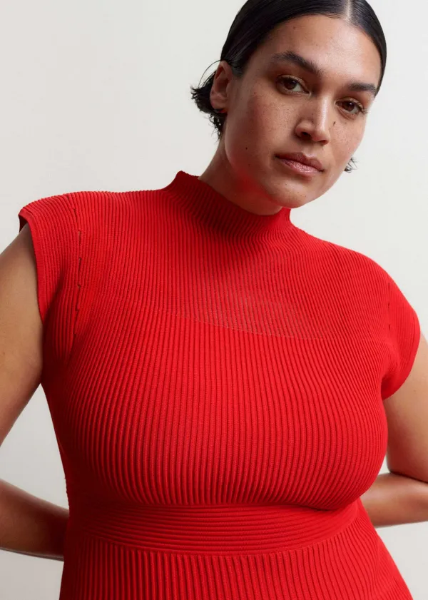 Boasting A Bold Red Hue And Combination Of Both Opaque And Sheer Panels, This Knitted Dress Introduces Striking Colour And Just The Right Amount Of Coverage To Your Look.