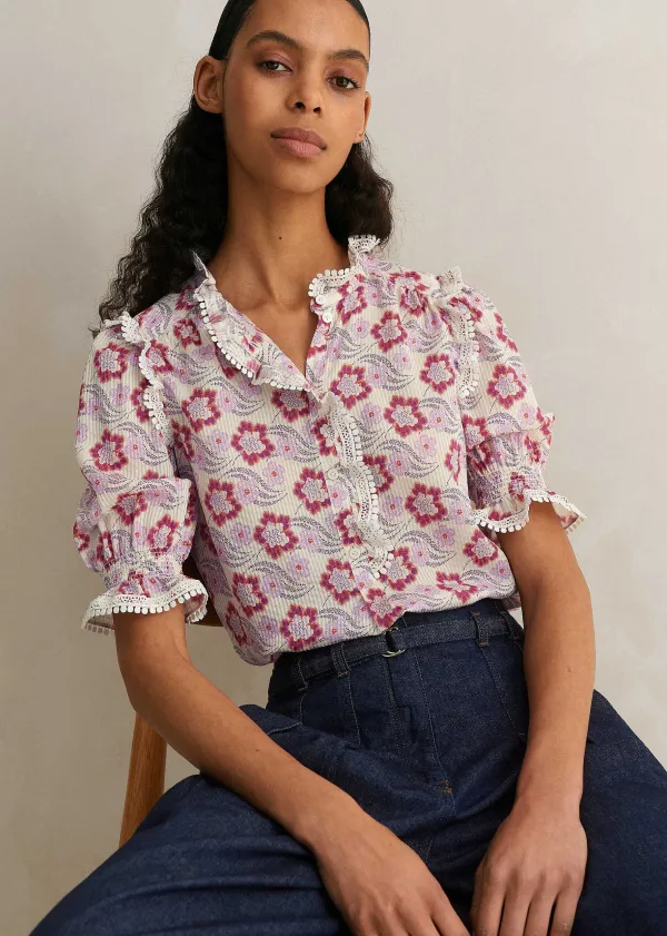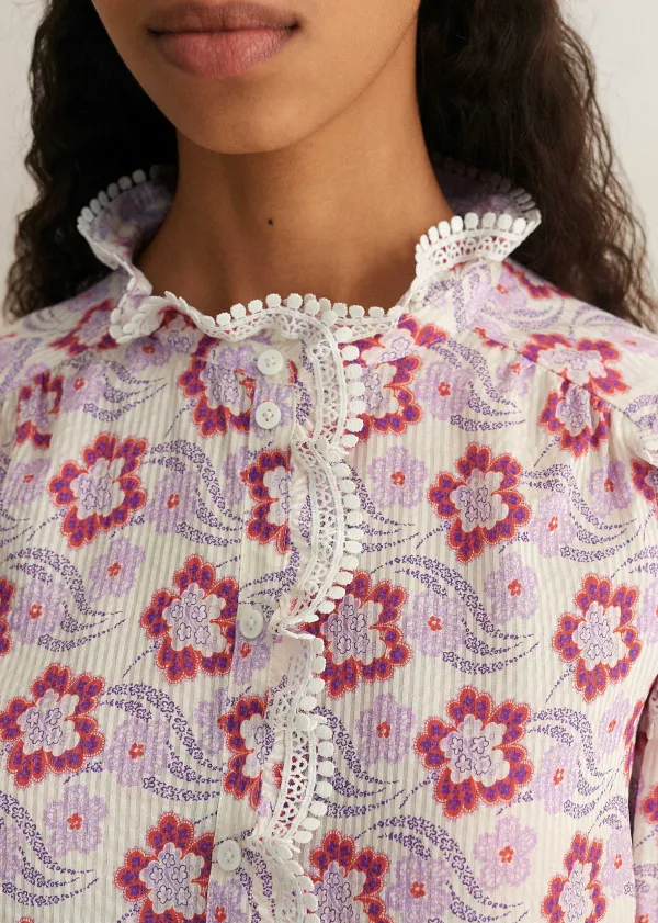 Helping You Transition Into The New Season Seamlessly, This Top Heroes Our Retro Floral Swirl Print. Combining Joyful Hues Of Purple And Coral On A Cream Backdrop, It Unlocks More Styling Potential With The Bright And Dark Neutral Separates Already In Your Wardrobe.