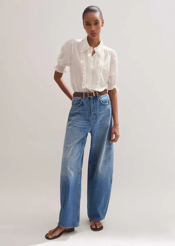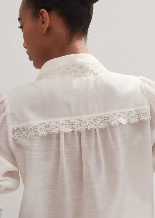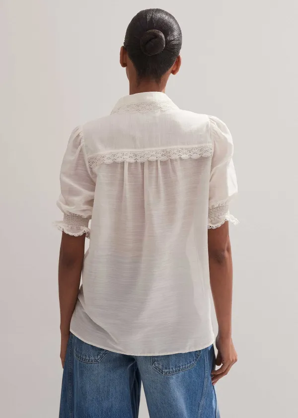 ME+EM Silk Cotton Lace Trim Blouse | Women Blouses