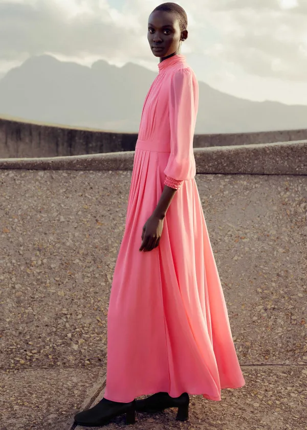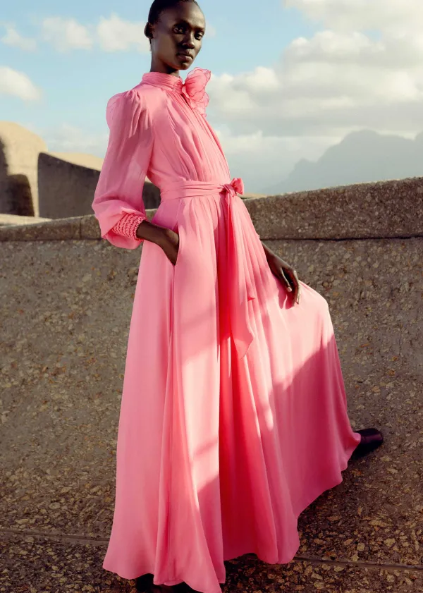 ME+EM Silk Full-Length Dress With Corsage + Belt | Women Maxi Dresses