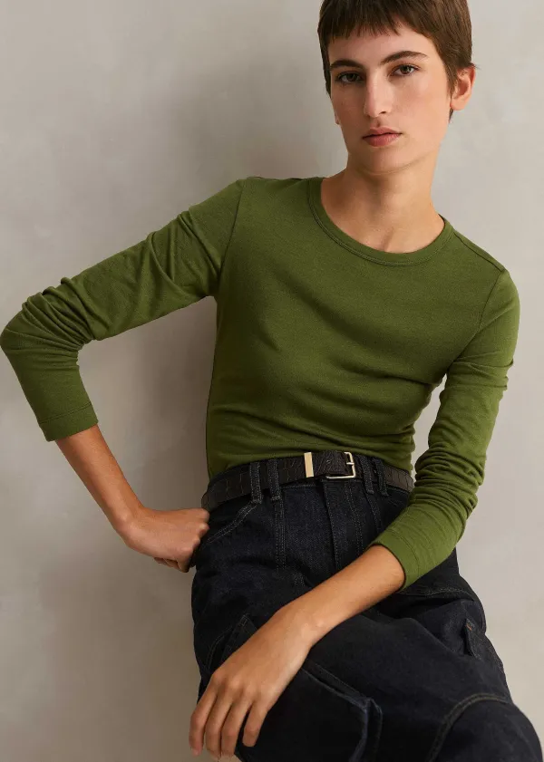 The Layering Essential To Add To Your Wear-Forever Wardrobe. This Crew Neck Top Heroes An Olive Green Hue To Effortlessly Add A New Colourway To Your On And Off-Duty Outfit Rotations, Whilst The Slim-Fitting Silhouette Results In A Bulk-Free Finish.