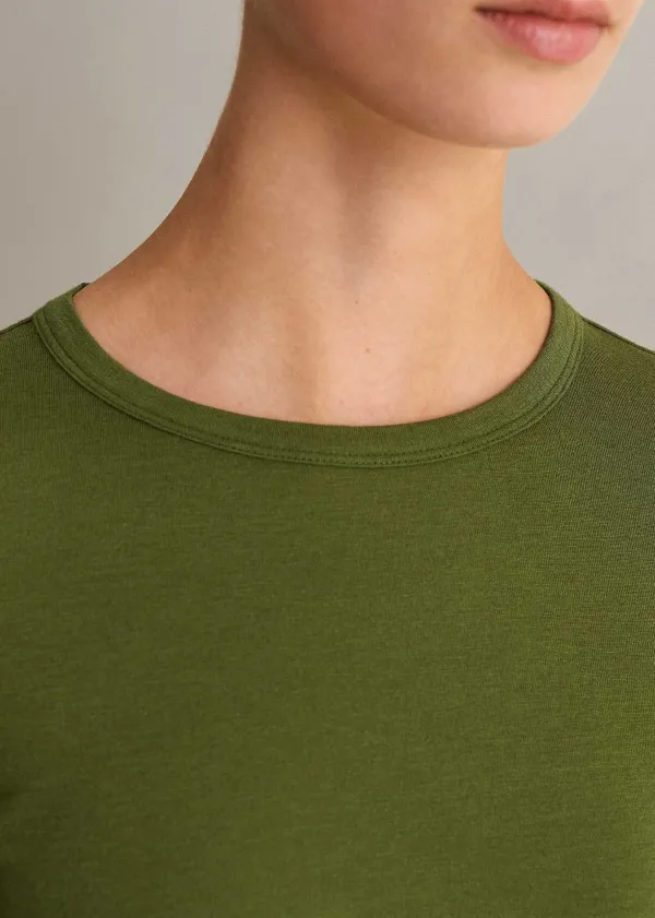 The Layering Essential To Add To Your Wear-Forever Wardrobe. This Crew Neck Top Heroes An Olive Green Hue To Effortlessl…