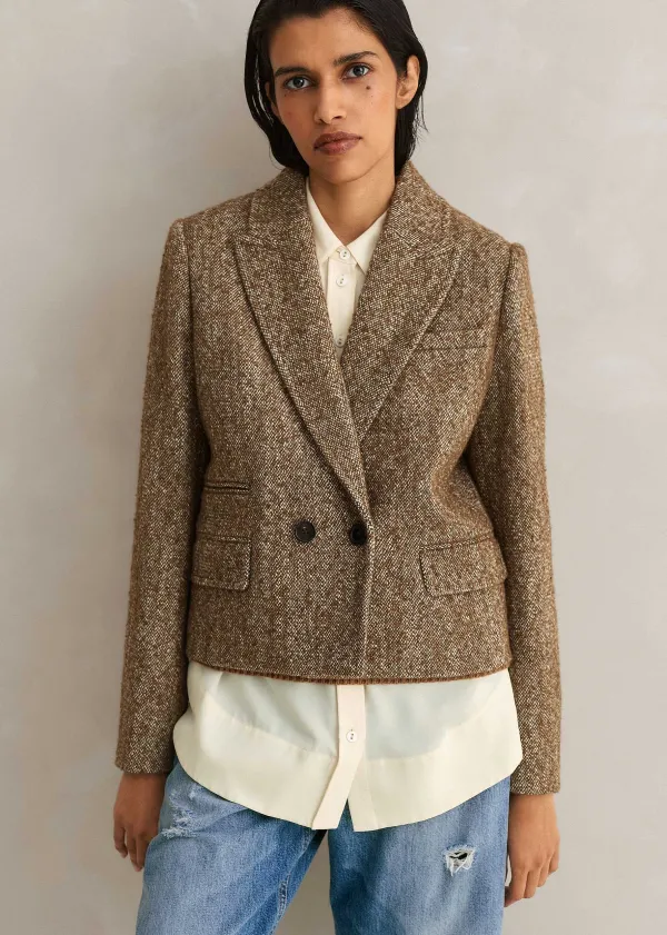 A Versatile Investment In An Autumnal Hue. Boasting A Mocha Shade, This Double-Breasted Tweed Jacket Pairs Perfectly Wit…
