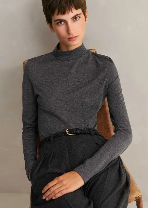 ME+EM Wool Jersey Roll Neck Top | Women Layering Tops