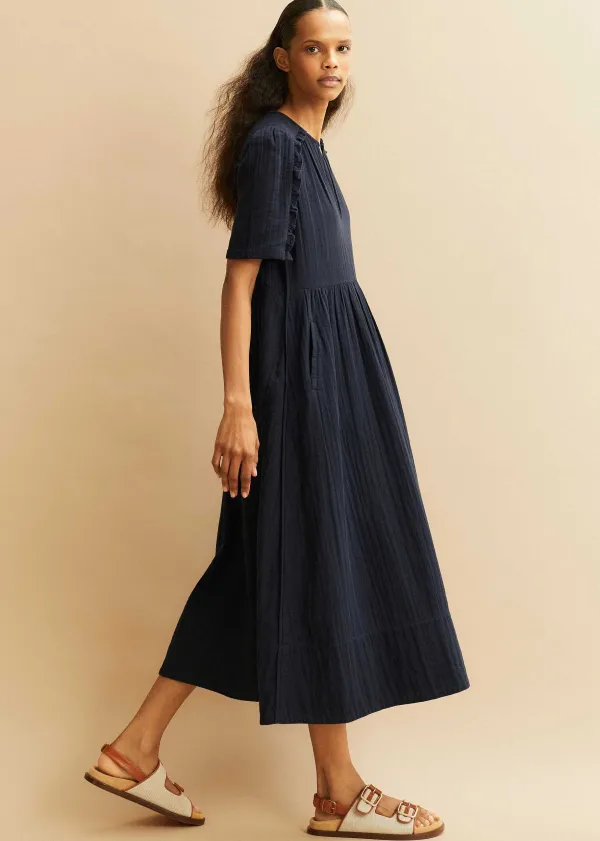 This Dress Shows How A Darker Colour Palette Works In Your Holiday Wardrobe. Cut From Naturally Textured, Breathable Cheesecloth In Navy, The Simple Short-Sleeved Style Is Crease-Free And Easy To Pack, Making It Perfect To Pull On At Your Destination And Wear All Day In The Heat.