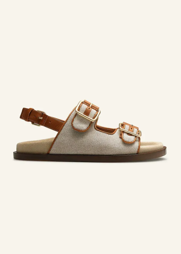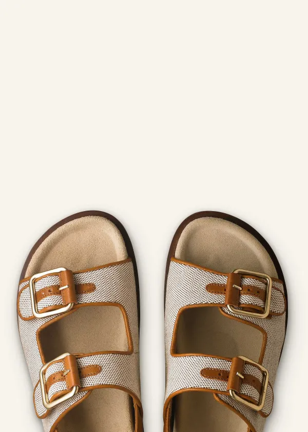 A Combination Of Smooth Italian Leather And A Cotton-Blend Canvas Create This Comfortable Sandal That Sits On A Moulded Footbed Ergonomically Shaped To Support Your Foot That Features Extra Padding For Easy Am-Pm Wear.