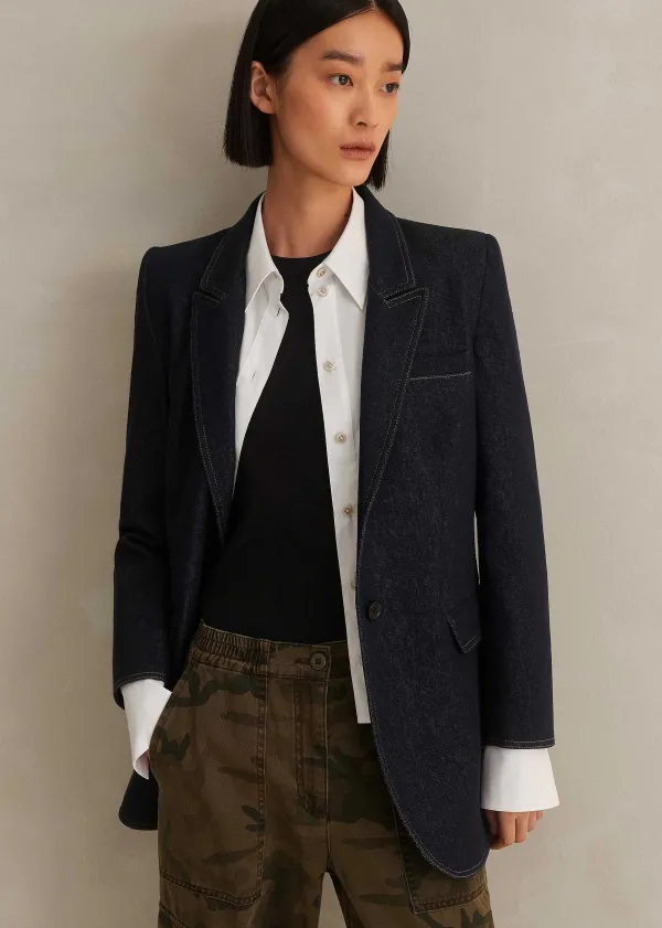 ME+EM Cotton Blend Denim Sharp Shoulder Blazer | Women Blazers