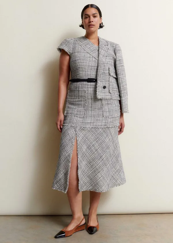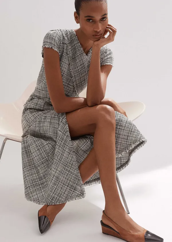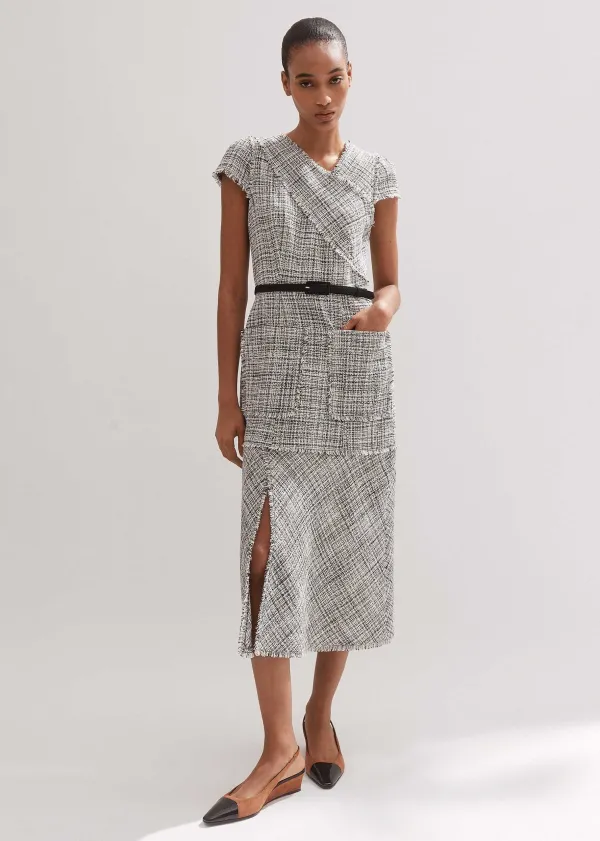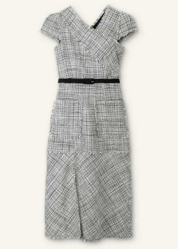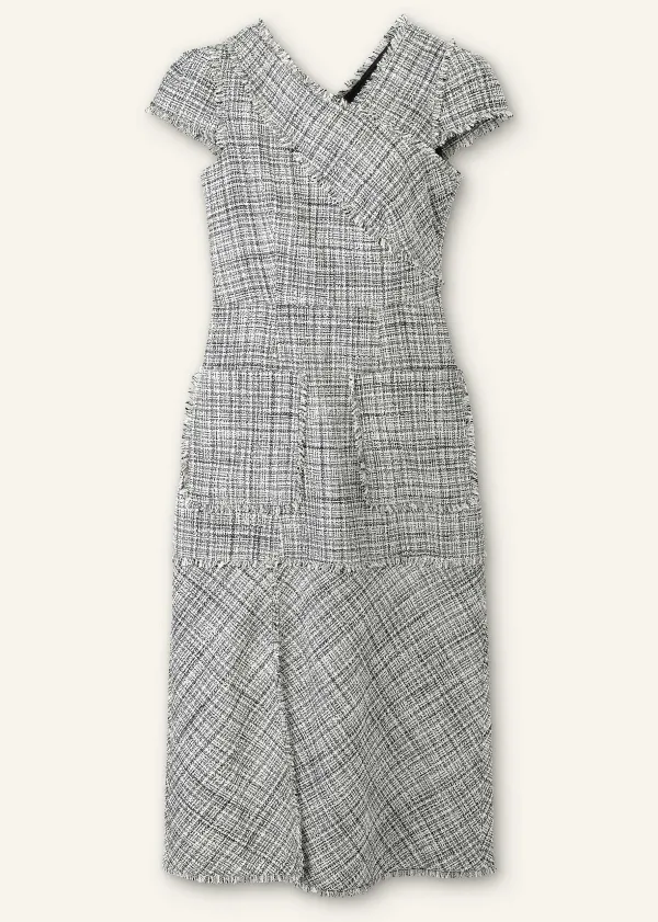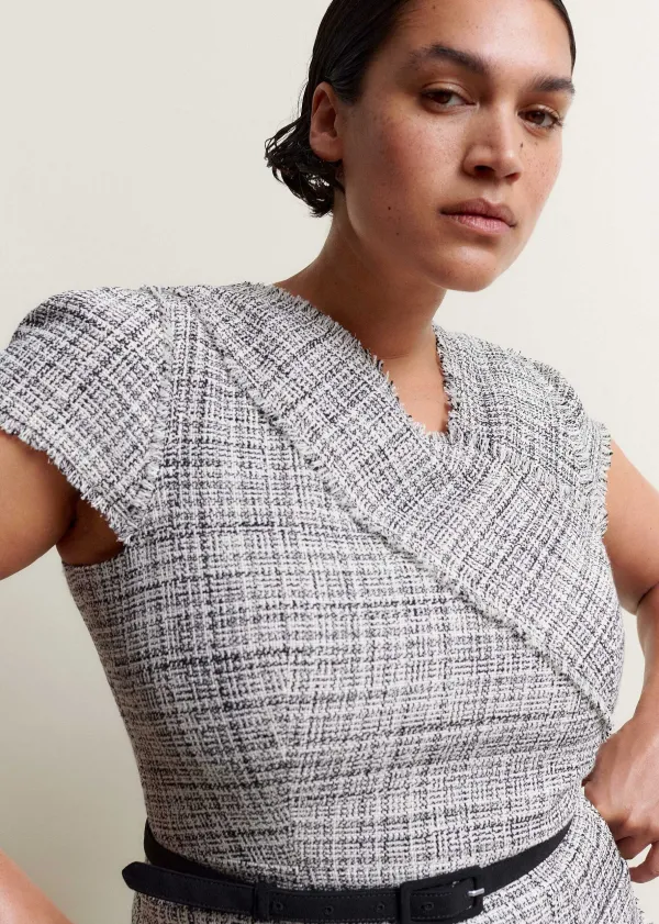 With A Crossover V-Neckline, Fringe Detailing And A Monochromatic Weave, This Dress Puts A Contemporary Spin On Classic Office Codes.