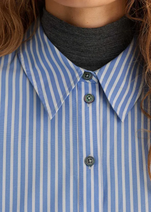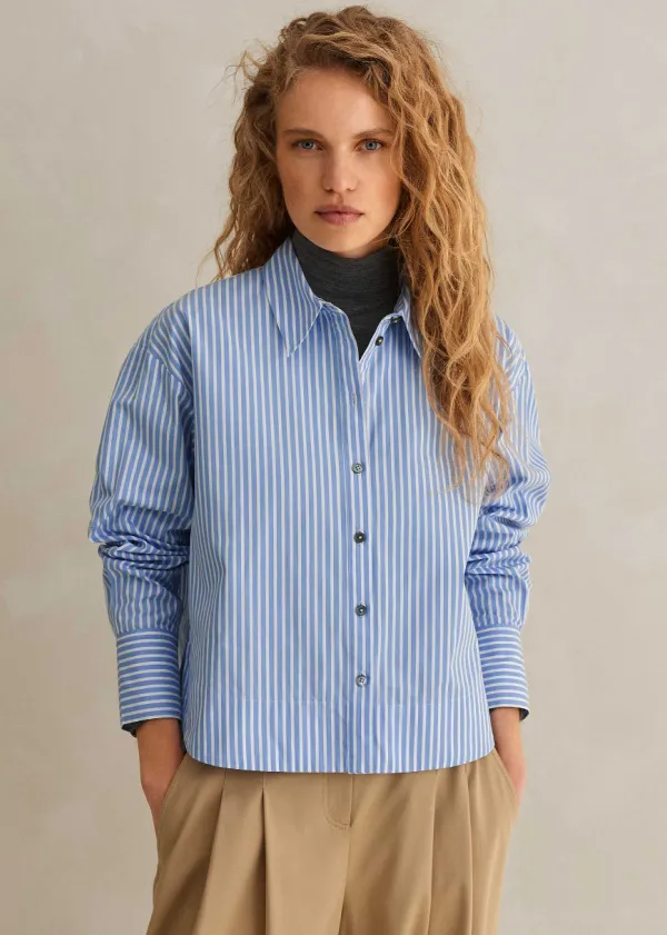 ME+EM Cotton Stripe Dipped Hem Crop Shirt | Women Shirts