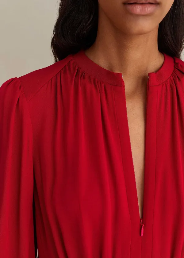 An Elegant Silhouette Meets A Statement Scarlet Shade To Create This Panelled Midi Dress. Crafted From Modern Crepe With A Flattering Fluid Drape, It’S An Effortless Office And Occasionwear Solution.