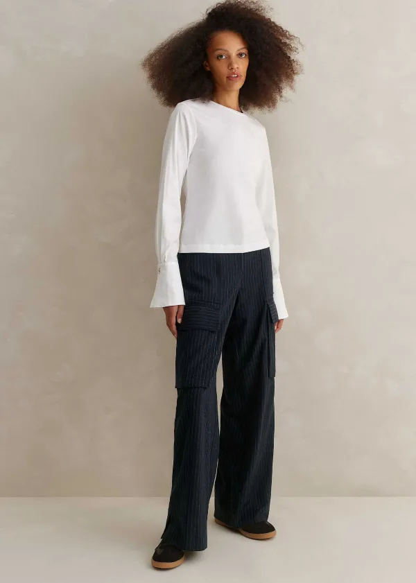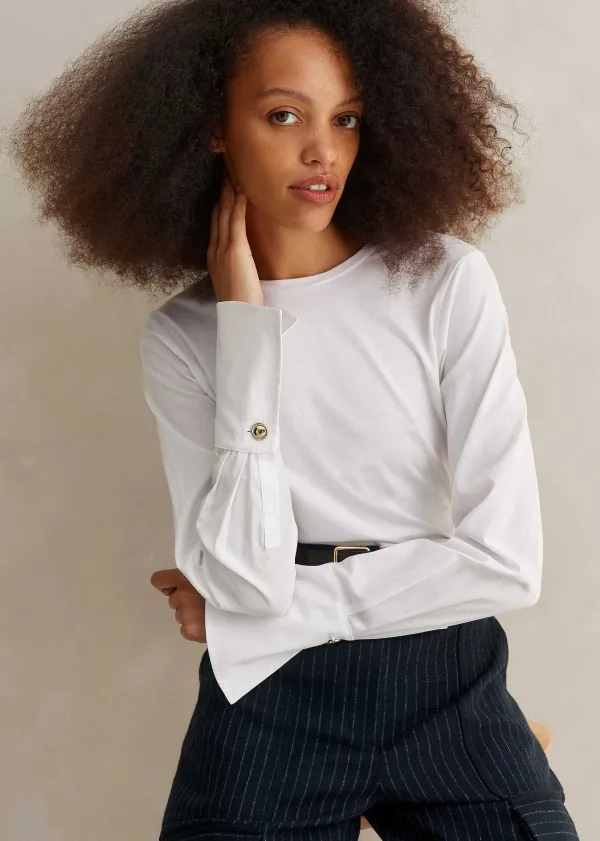 ME+EM Feature Button Crew Neck Layering Shirt | Women Shirts