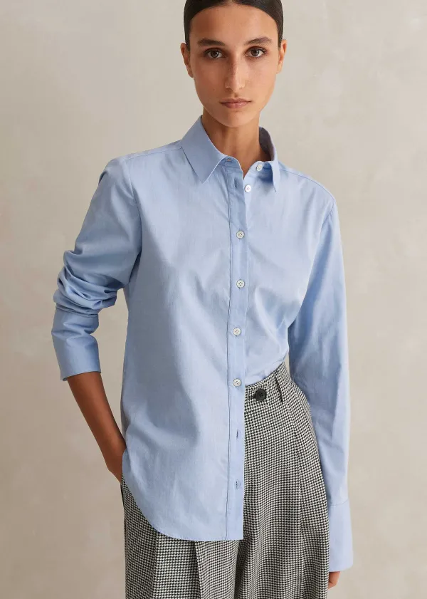 Our Much-Loved Forever Shirt Returns. In A Chambray-Blue Colourway, It Adds A Crispness To Tailored Looks While Its Lightweight Cut And Simple Silhouette Make It Easy To Layer Under Knitwear And Blazers For A Bulk-Free, Polished Finish.