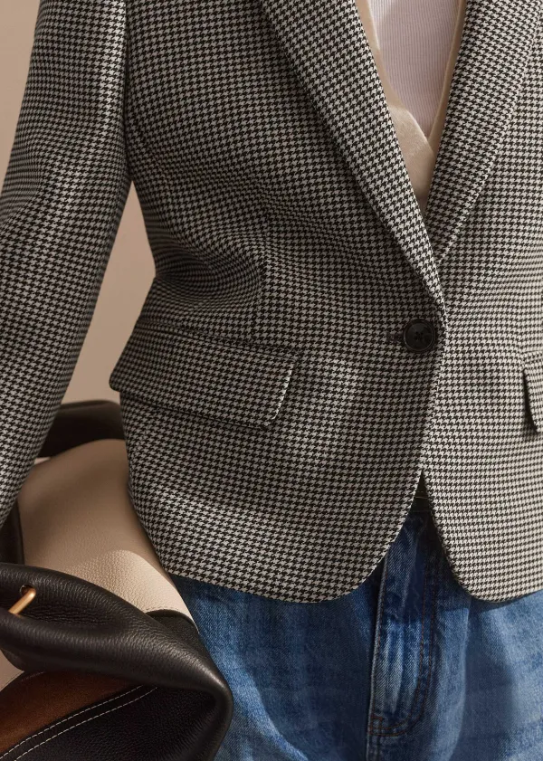 A Classic Pattern Synonymous With Tailoring Is Given A Contemporary Update Thanks To The Cropped Cut Of This Houndstooth Jacket. It’S Intelligently Designed To Complement High Waistlines, Slotting In Seamlessly With The Matching Trousers For A Flattering Finish.