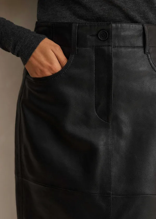 A Transitional Wardrobe Staple. This Leather Skirt Is Cut To A Flattering Pencil Shape And Midi Length, With The Simple Cut And Intelligent Design Details Working With Vests In The Summer And Knitwear In The Winter.
