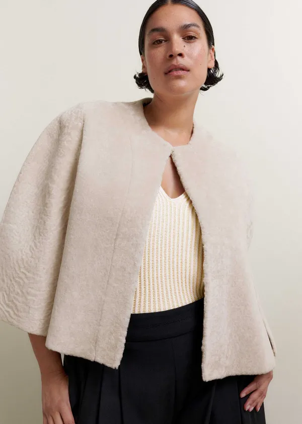A Contemporary Cropped Cut And Luxuriously Tactile Finish Define This Cape. Crafted From Shearling With A Super Soft, Fl…