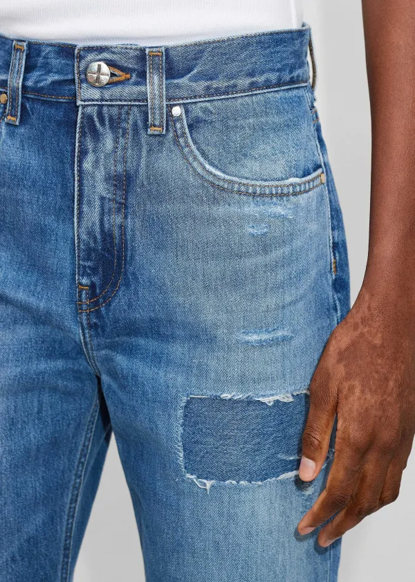 A Clean Cut, Slim-Leg Silhouette Is Granted A Covetable Edge With A Faded Wash Over The Thighs And Patch Detailing Along…