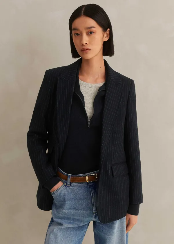 ME+EM Pinstripe Bracelet Sleeve Boyfriend Blazer | Women Blazers