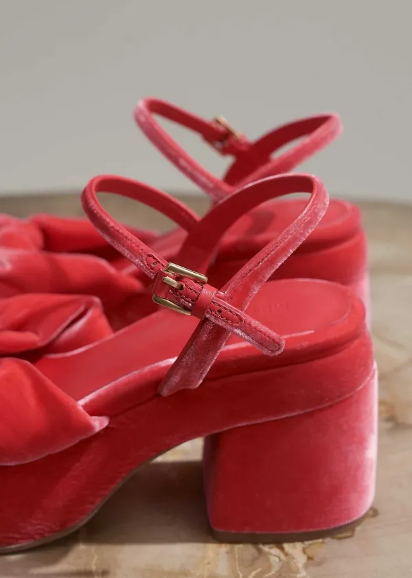 A Duvet-Like Softness And Bold Coral Hue Come Together Across This Platform To Create The Ultimate Day-To-Night Heel. Crafted From Italian Crushed Velvet, This Pair Is Elevated With A Soft Knot Atop Your Toe And Is Intelligently Designed With Comfortable Cushioning At The Sole And A Low-Pitch Heel For Am-Pm Versatility And Optimal Comfort.