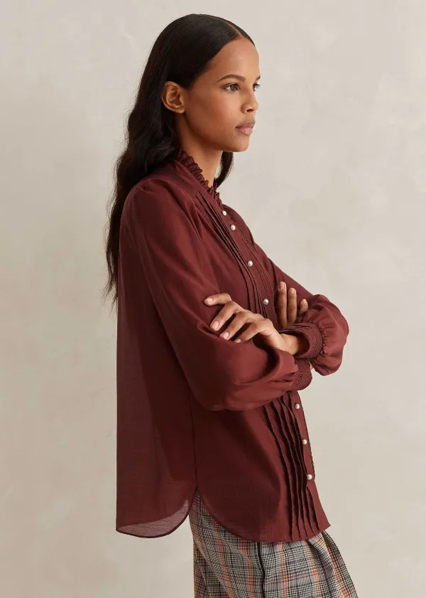 A Deep Autumnal Hue Joins A Satin-Like Fabric On This Long-Sleeved Blouse That Ensures A Bulk-Free Finish When Layered O…