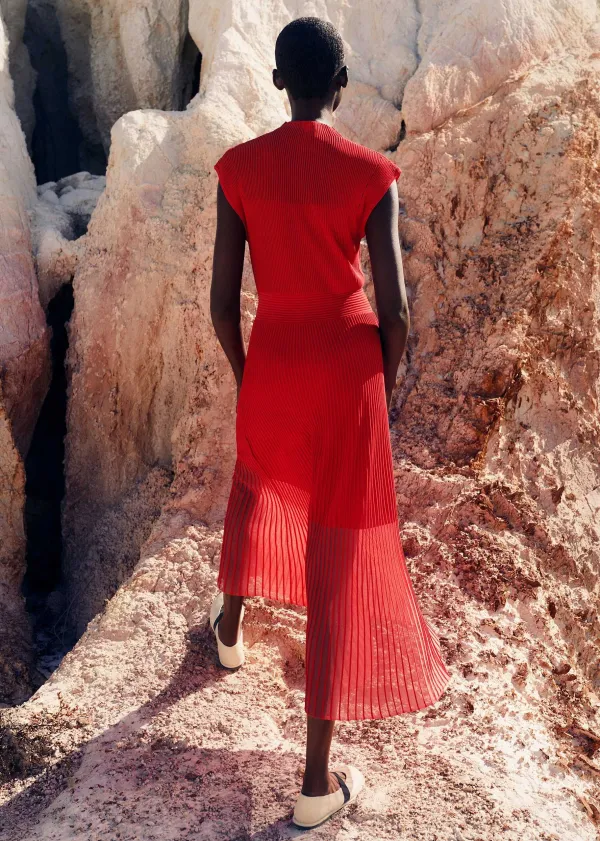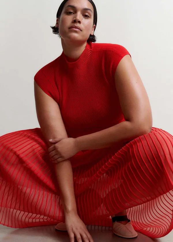 Boasting A Bold Red Hue And Combination Of Both Opaque And Sheer Panels, This Knitted Dress Introduces Striking Colour A…