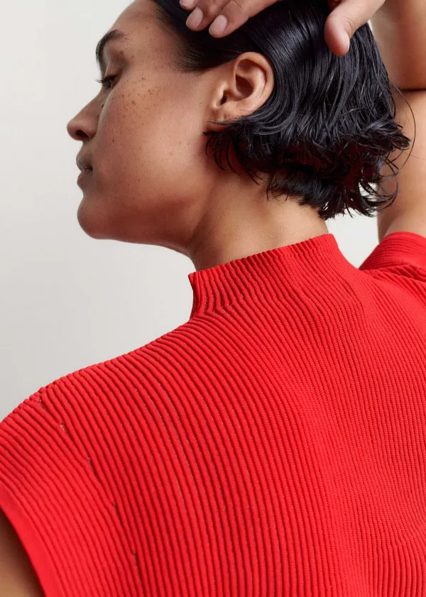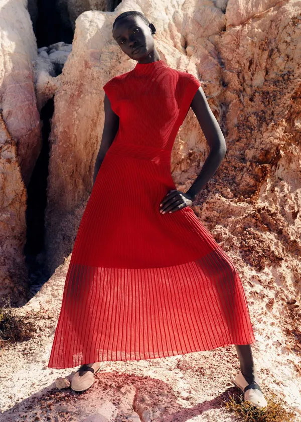 Boasting A Bold Red Hue And Combination Of Both Opaque And Sheer Panels, This Knitted Dress Introduces Striking Colour And Just The Right Amount Of Coverage To Your Look.