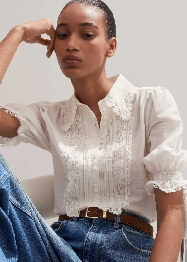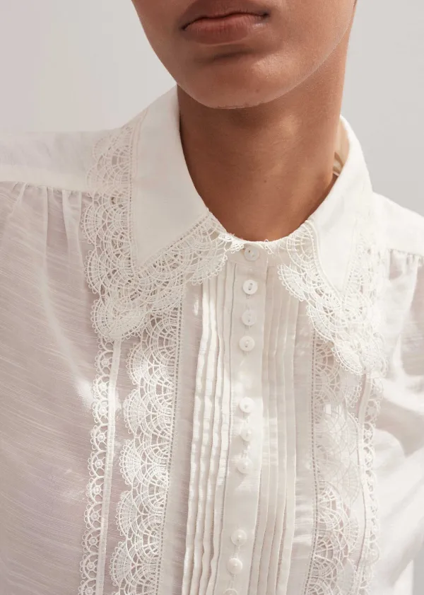 ME+EM Silk Cotton Lace Trim Blouse | Women Blouses