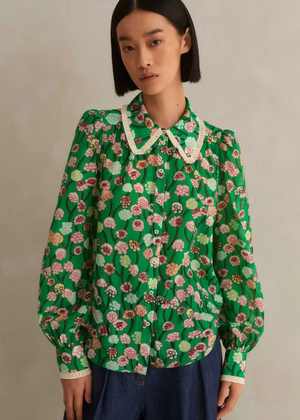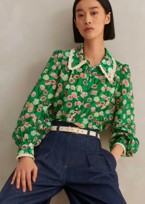 ME+EM Silk Cotton Lantana Flower Print Shirt | Women Blouses