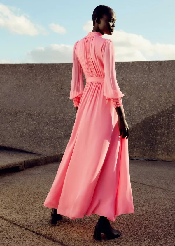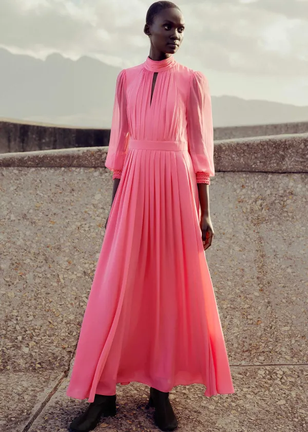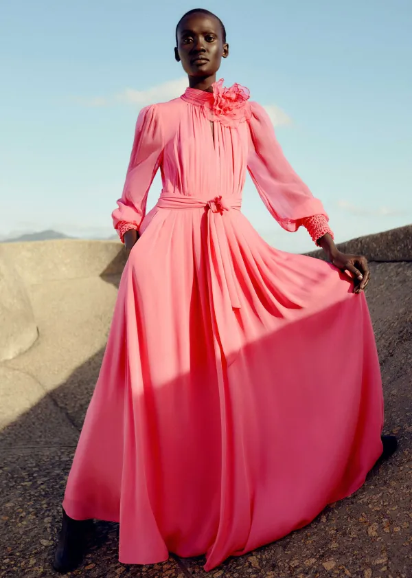 ME+EM Silk Full-Length Dress With Corsage + Belt | Women Maxi Dresses
