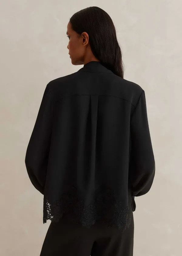 ME+EM Silk + Lace Cropped Pussybow Blouse | Women Blouses