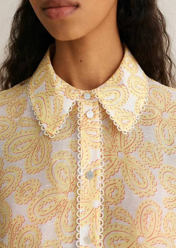 ME+EM Silk-Linen Lace Print Balloon Sleeve Blouse | Women Blouses