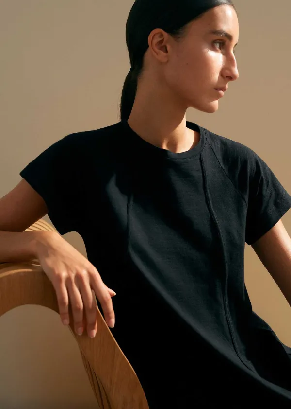 Translating A Staple Tee Into A Day Dress, This Piece Heroes A Short Length And Swing Silhouette For Wear-Everywhere Comfort And A Breathable Finish.