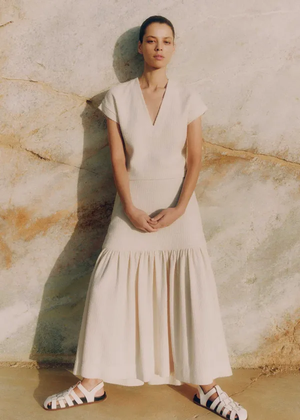 Boasting A Soft Tactility And Versatile Cream Hue, The Flattering V-Neck Top And High-Waisted Maxi Skirt In This Two-Pie…