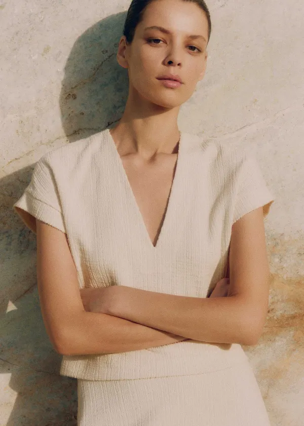 Boasting A Soft Tactility And Versatile Cream Hue, The Flattering V-Neck Top And High-Waisted Maxi Skirt In This Two-Piece Can Be Worn Together Or Separately To Complement Your On And Off-Duty Outfitting.
