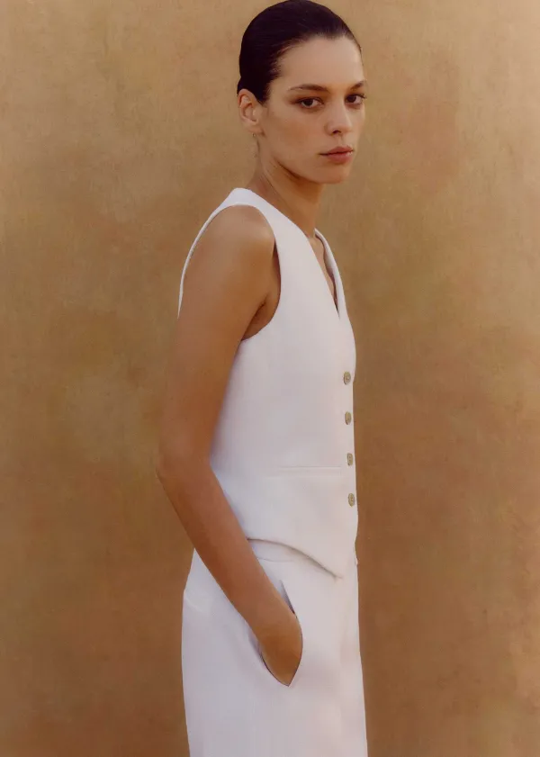 A Contemporary Update To Classic Office Dress Codes, This Tux Waistcoat Exudes Sophisticated Confidence With Its Structured Silhouette And Clean, Polished Aesthetic. Wear It As A Standalone Piece Or Opt For A Statement Suit With The Matching Blazer And Trouser.