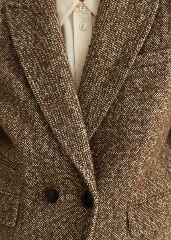 A Versatile Investment In An Autumnal Hue. Boasting A Mocha Shade, This Double-Breasted Tweed Jacket Pairs Perfectly With The Neutrals Typically Associated With A Cold-Weather Wardrobe.