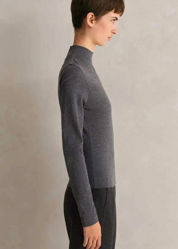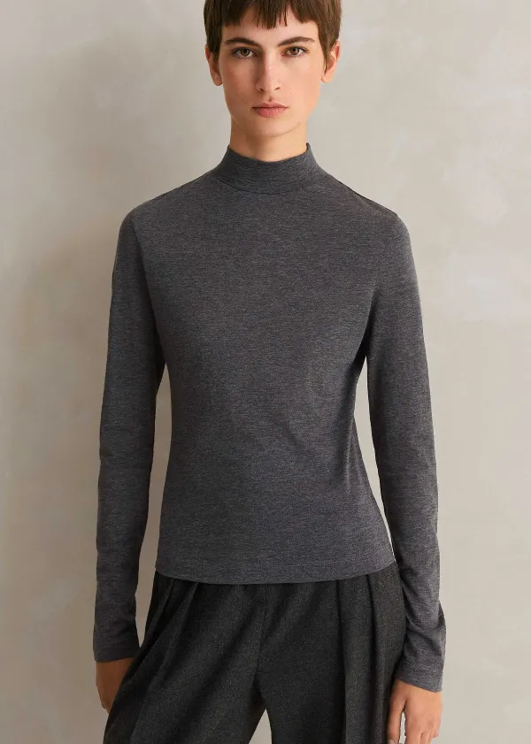 ME+EM Wool Jersey Roll Neck Top | Women Layering Tops